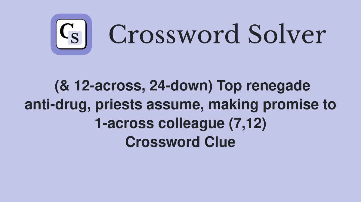( 12 across 24 down) Top renegade anti drug priests assume making