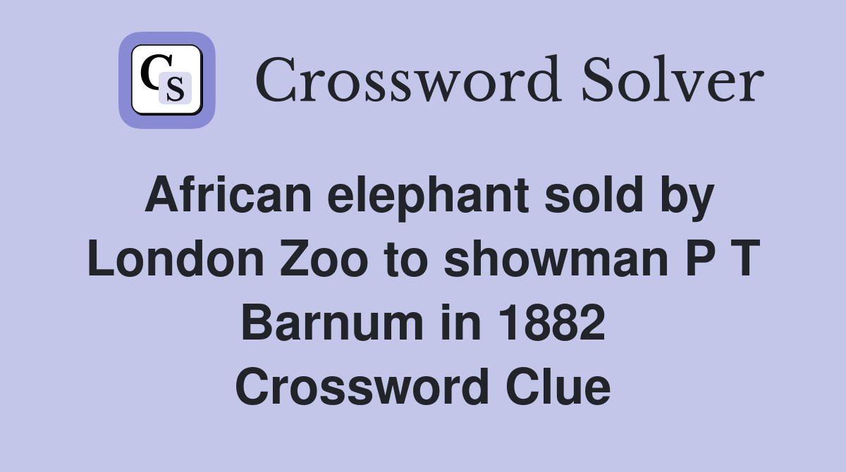 African elephant sold by London Zoo to showman P T Barnum in 1882