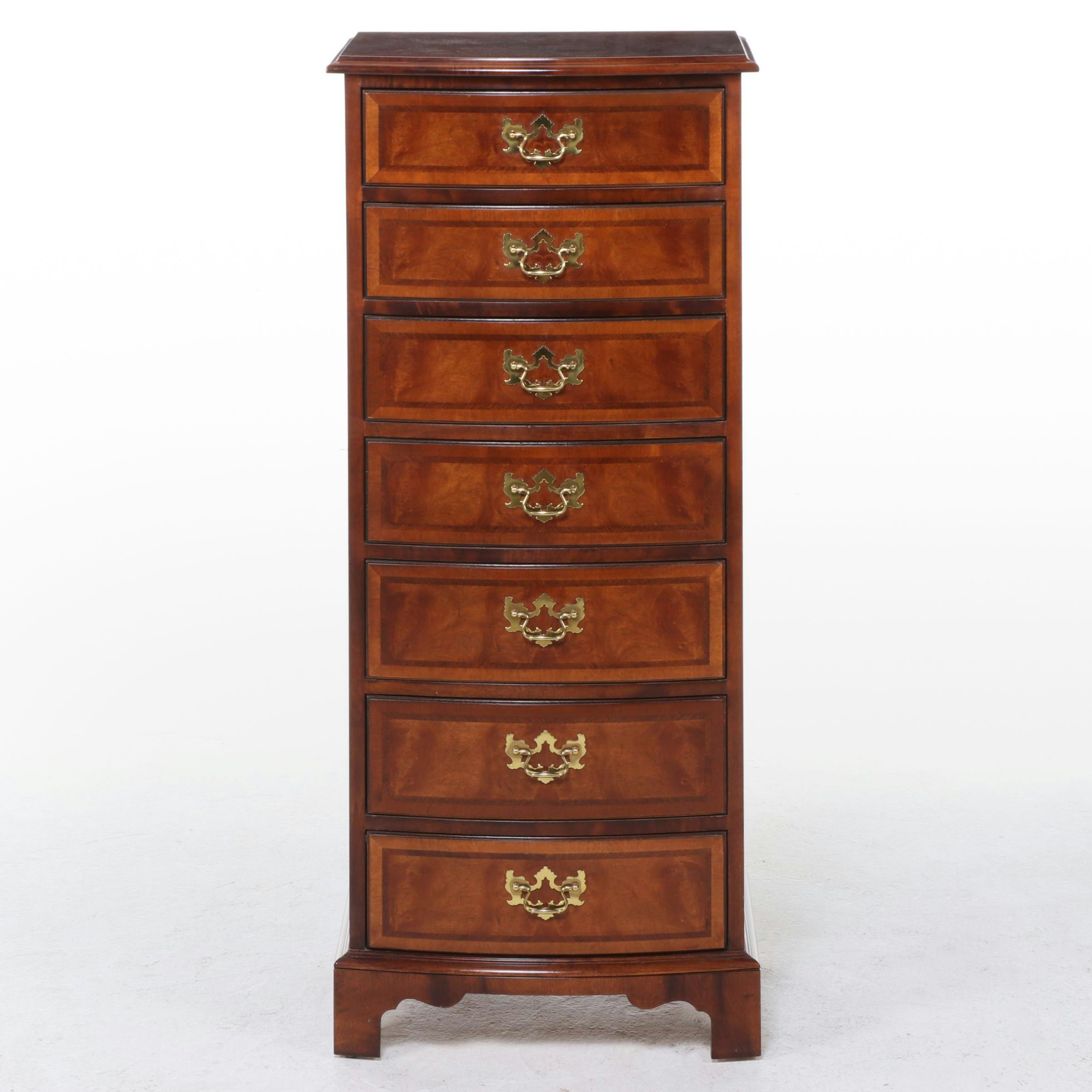 Henredon Aston Court Bow Front Banded Semi Tall Chest of Drawers (Lot