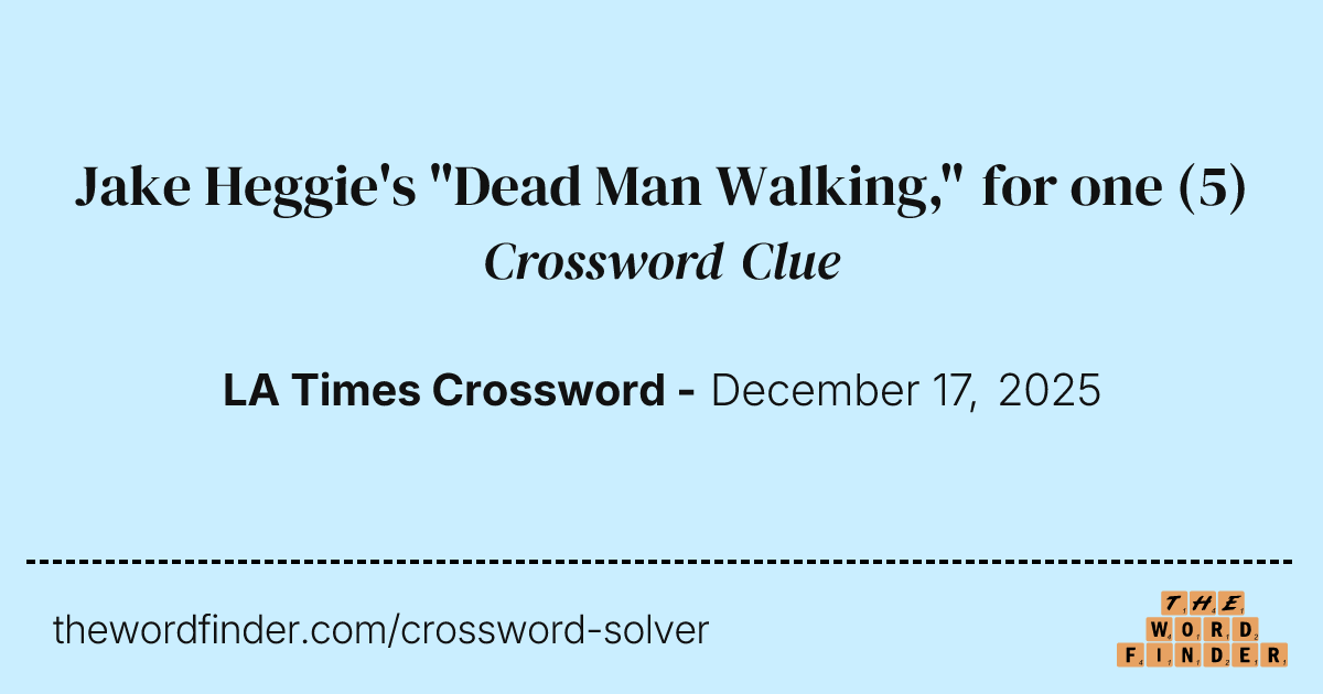 Jake Heggie #39 s quot Dead Man Walking quot for one Crossword Clue