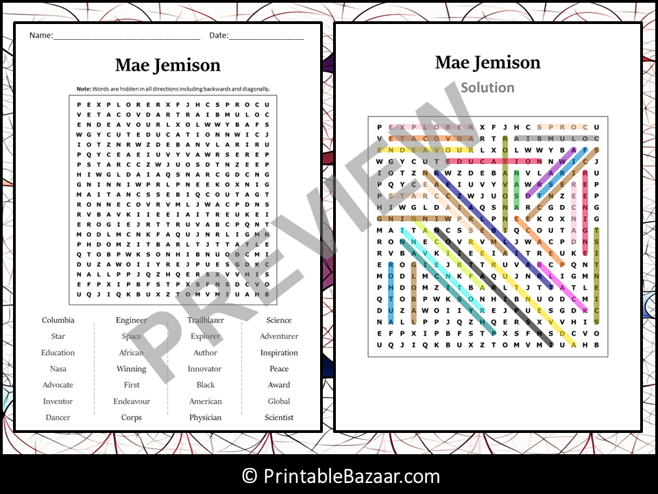 Mae Jemison Word Search WordMint