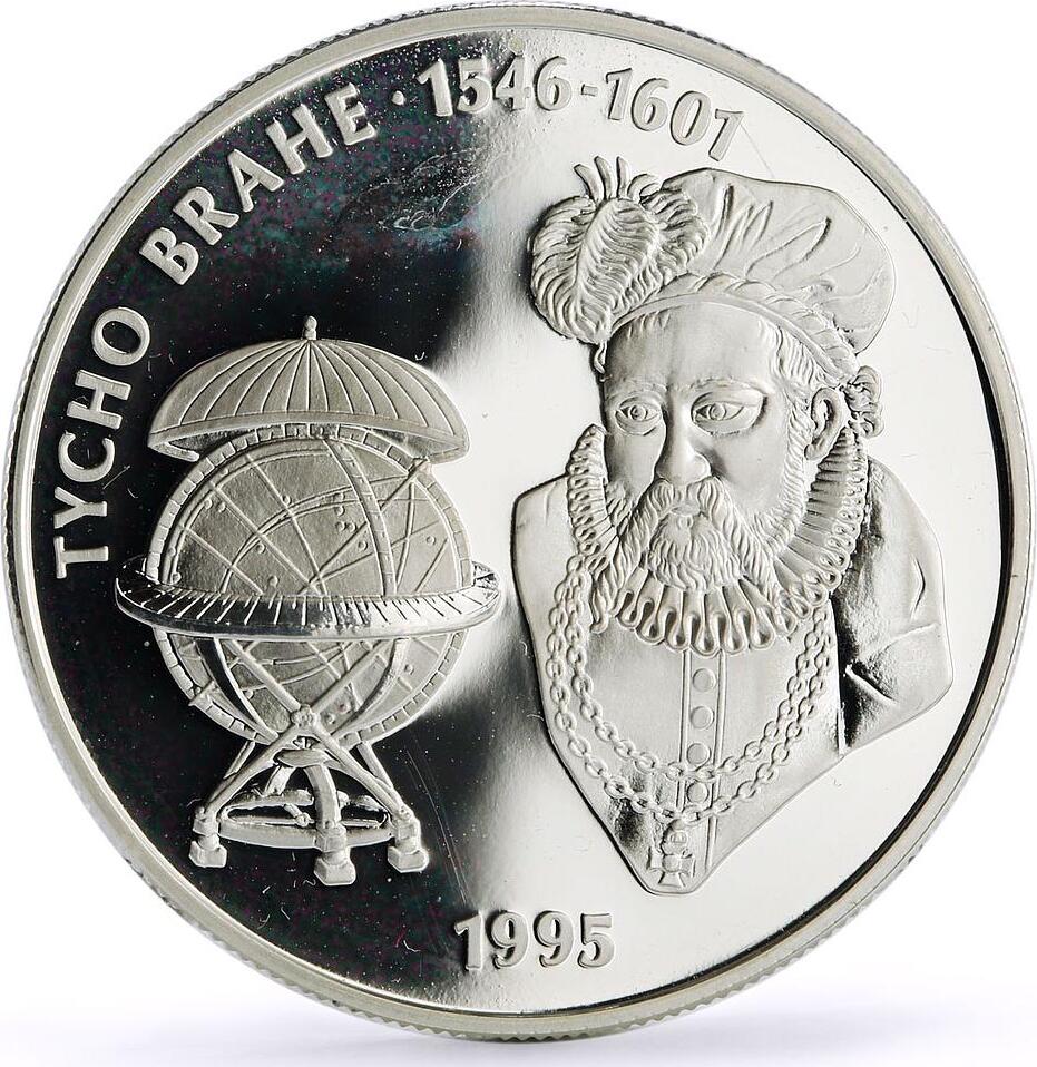 Jamaica 25 dollars Astronomer Tycho Brahe Head Facing Science silver