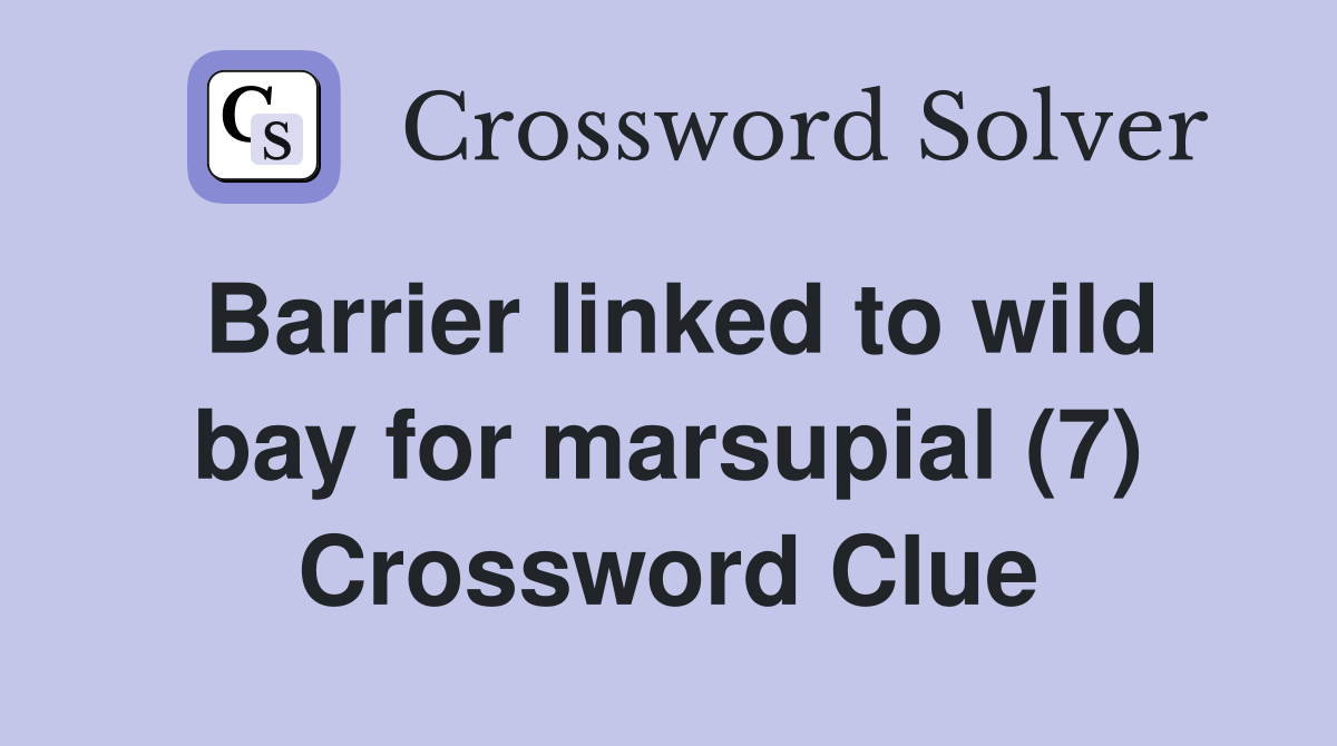 Barrier linked to wild bay for marsupial (7) Crossword Clue Answers