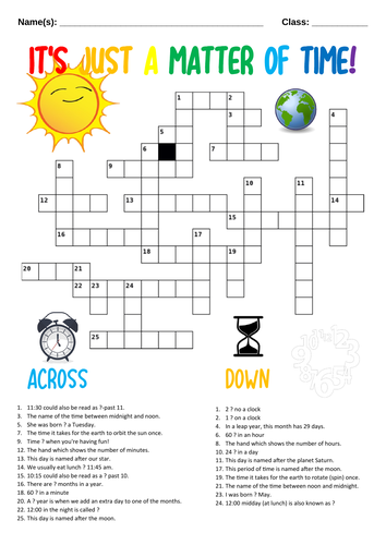 It s Just a Matter of Time Crossword A3 Size Teaching Resources