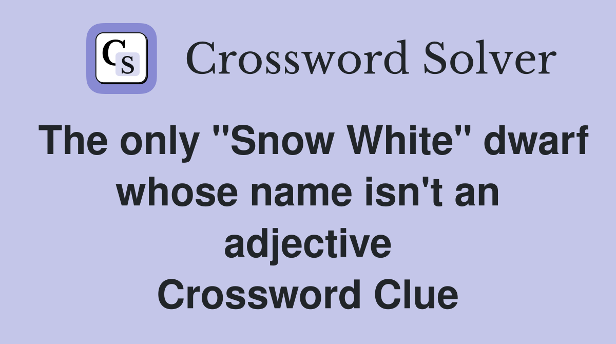 The only quot Snow White quot dwarf whose name isn #39 t an adjective Crossword