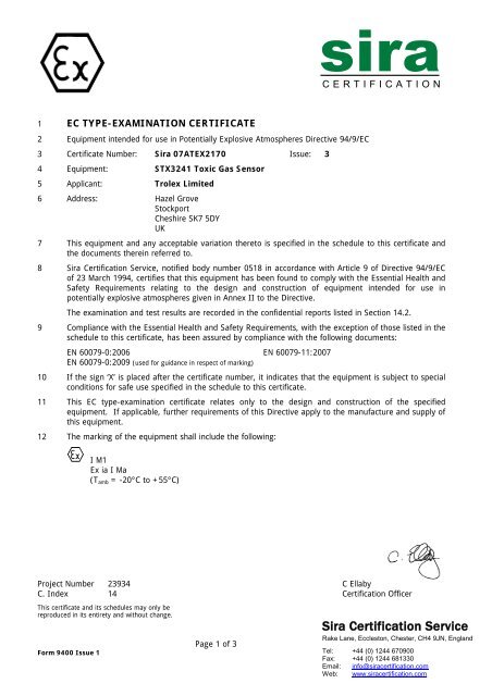 STX3241 ATEX certificate Grp I (Sira 07ATEX2170 Iss 3) Trolex