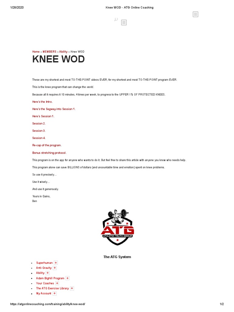 Knee WOD ATG Online Coaching PDF PDF