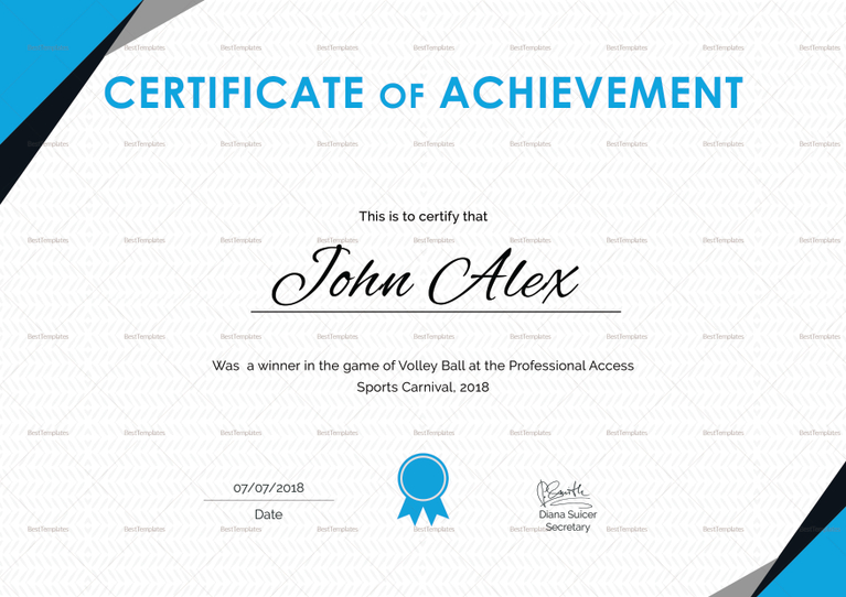 Certificate of Athletic Achievement Design Template in PSD Word