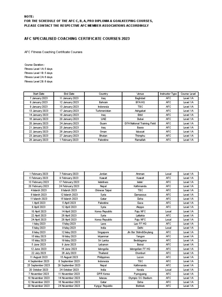 AFC Fitness Coaching Certificate Courses 2023 PDF Athletic Sports