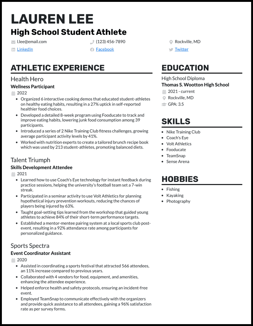 5 High School Student Athlete Resume Examples for 2025