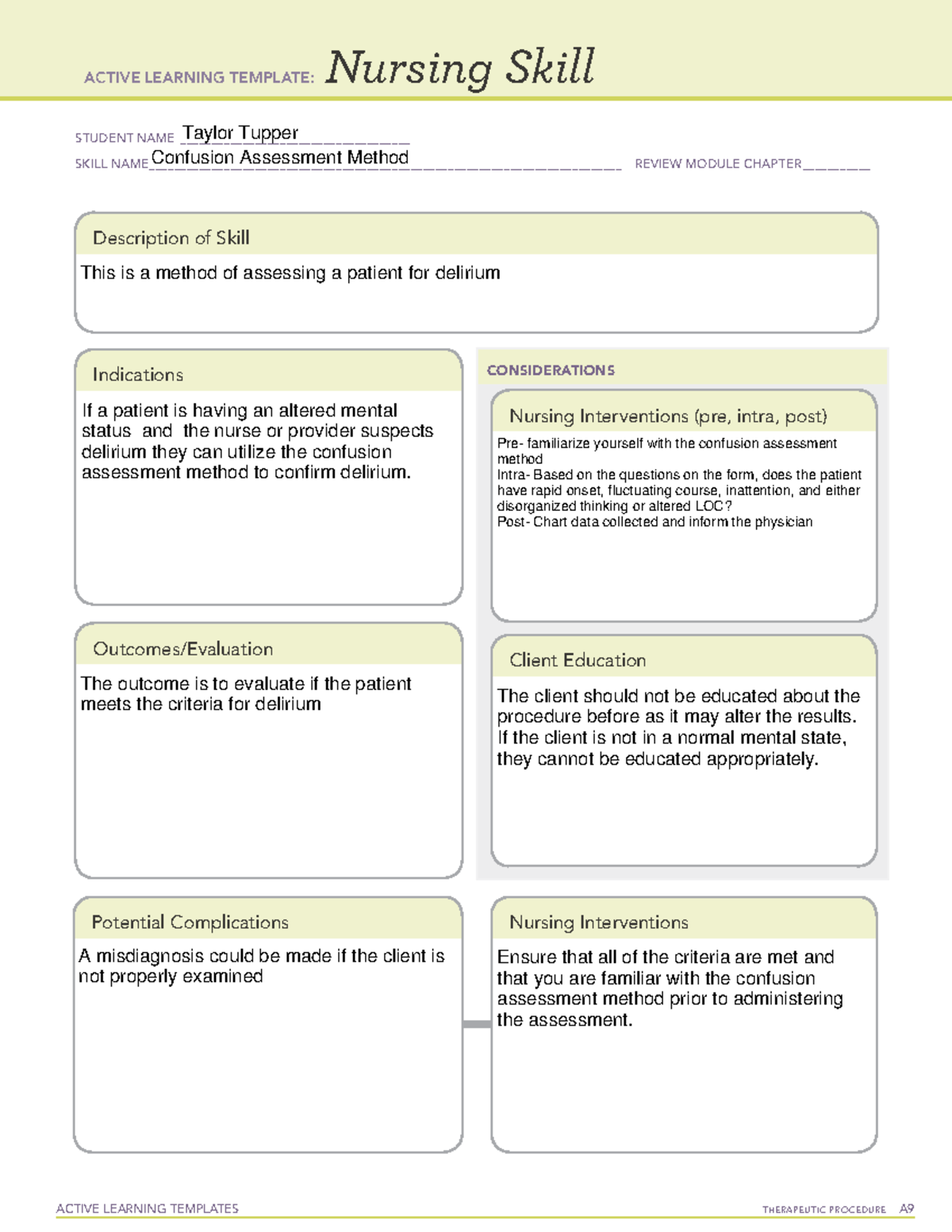 Solved active learning template: Nursing skill STUOENT NAME Chegg com