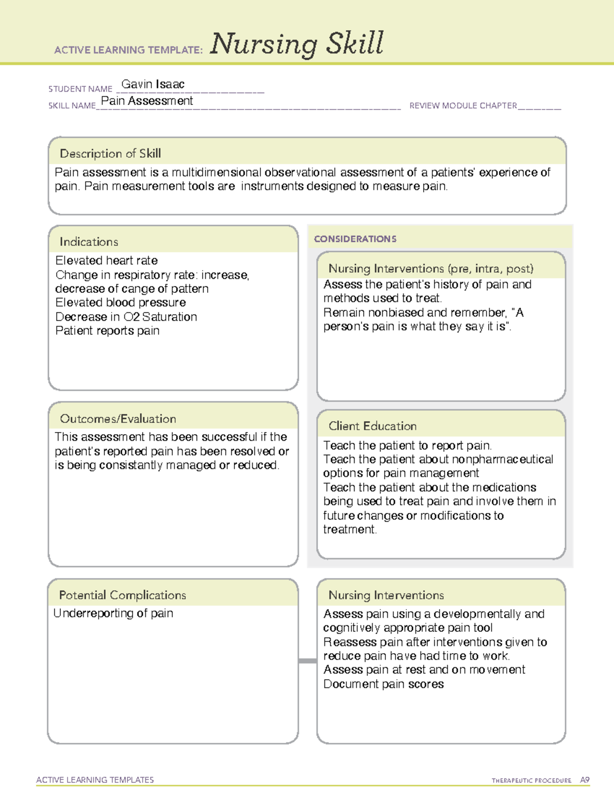 Skill Pain Assessment Active Learning Template ACTIVE LEARNING