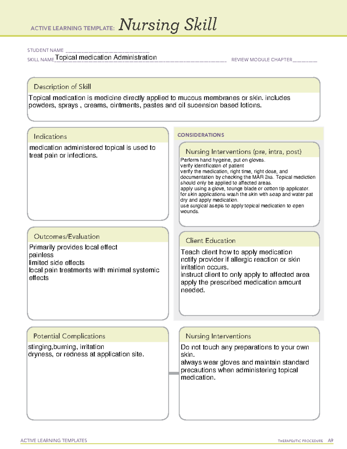 NUR 101 Active Learning Template for Topical Medication Skills Studocu