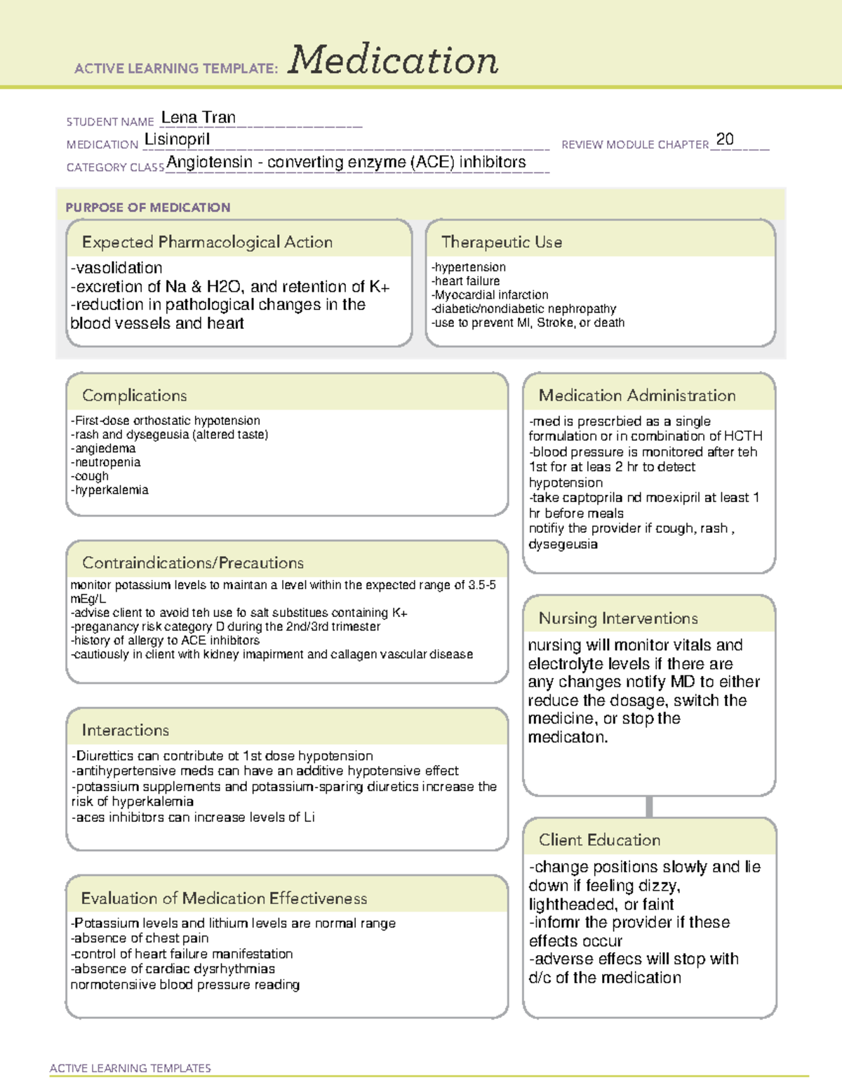 Ati Medication Template Lisinopril