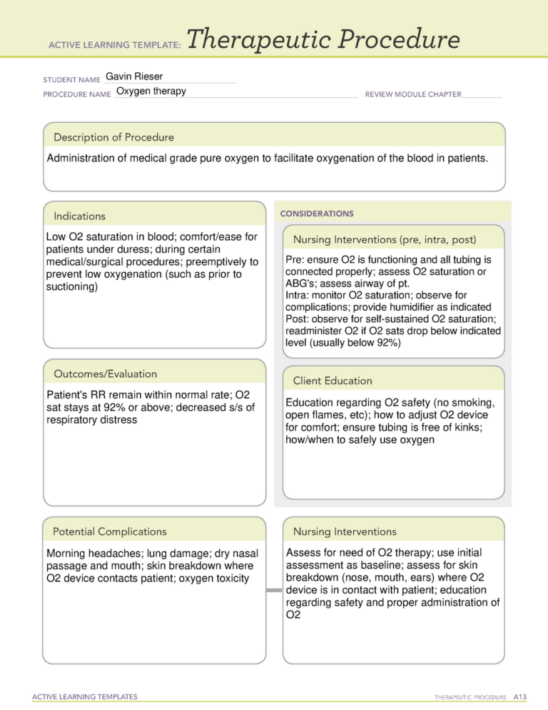 Ati Active Learning Template Therapeutic Procedure prntbl