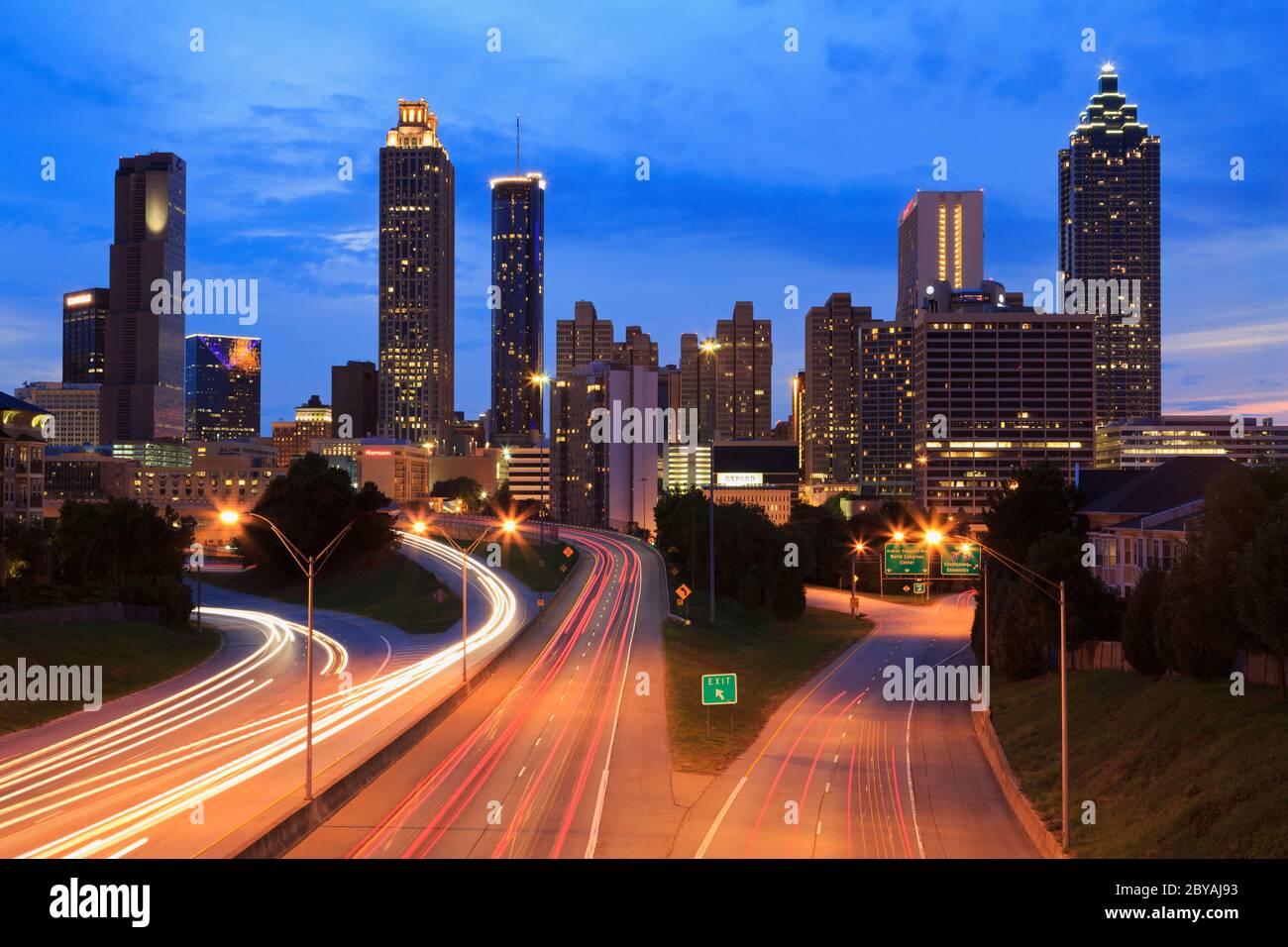 Downtown Atlanta center area skyline cityscape of USA at twilight Stock