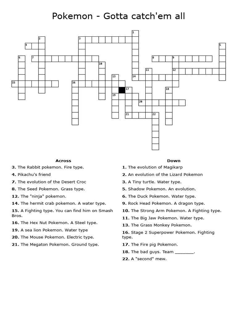 Pokemon Gotta Catch #39 em All Crossword Labs PDF