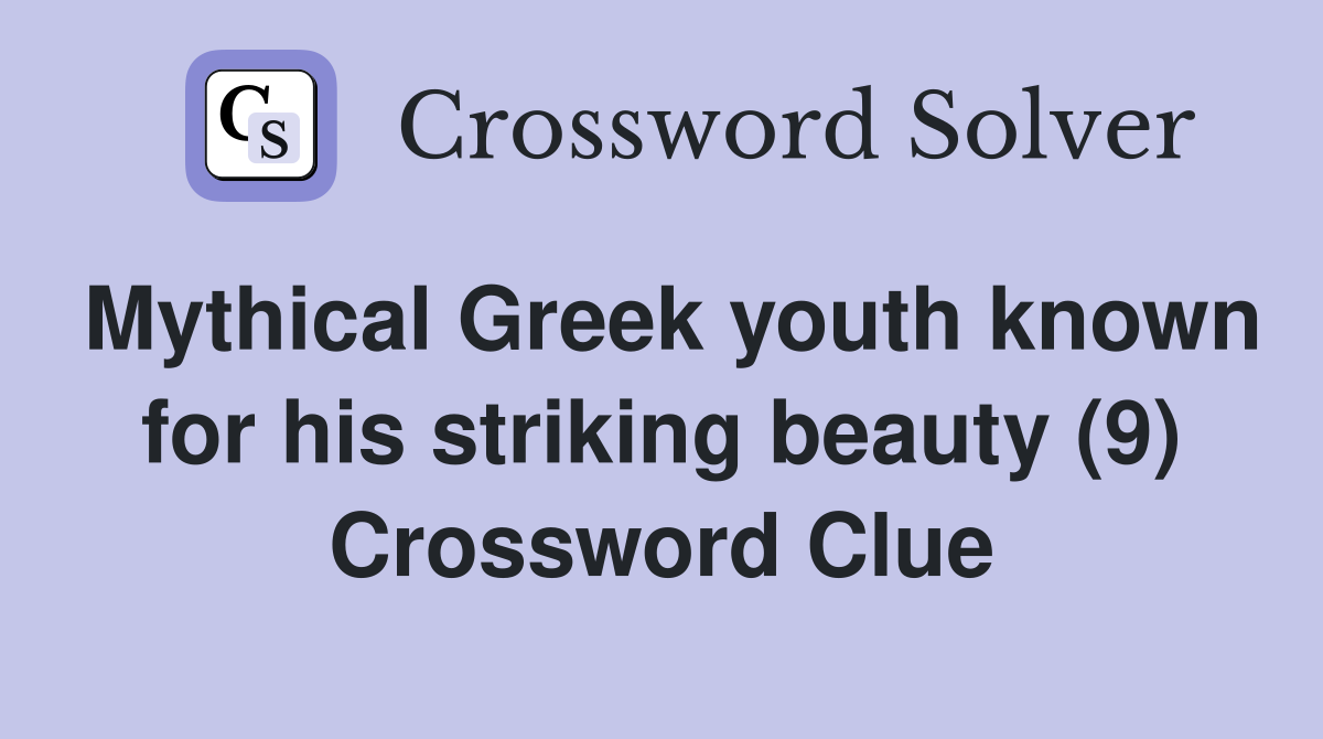 Mythical Greek youth known for his striking beauty (9) Crossword Clue