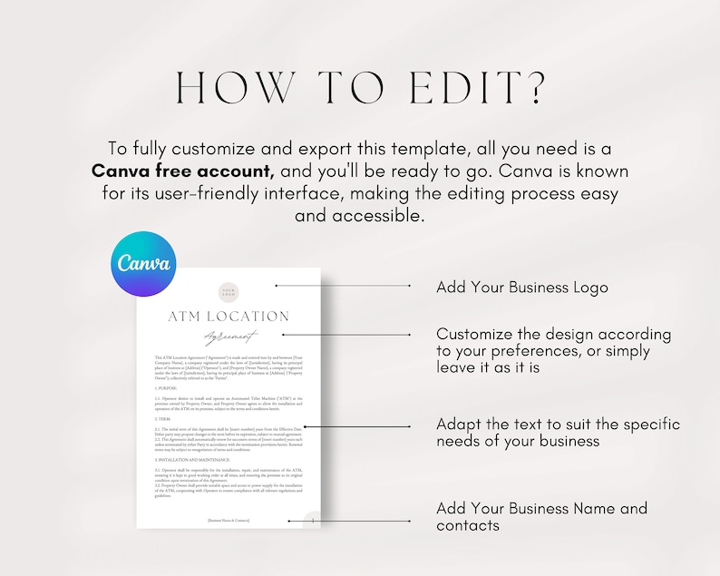 ATM Location Agreement Template Editable Canva Template Professional