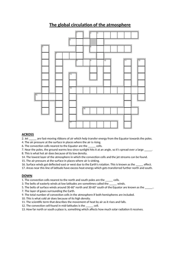 Global atmospheric circulation crossword for AQA Teaching Resources