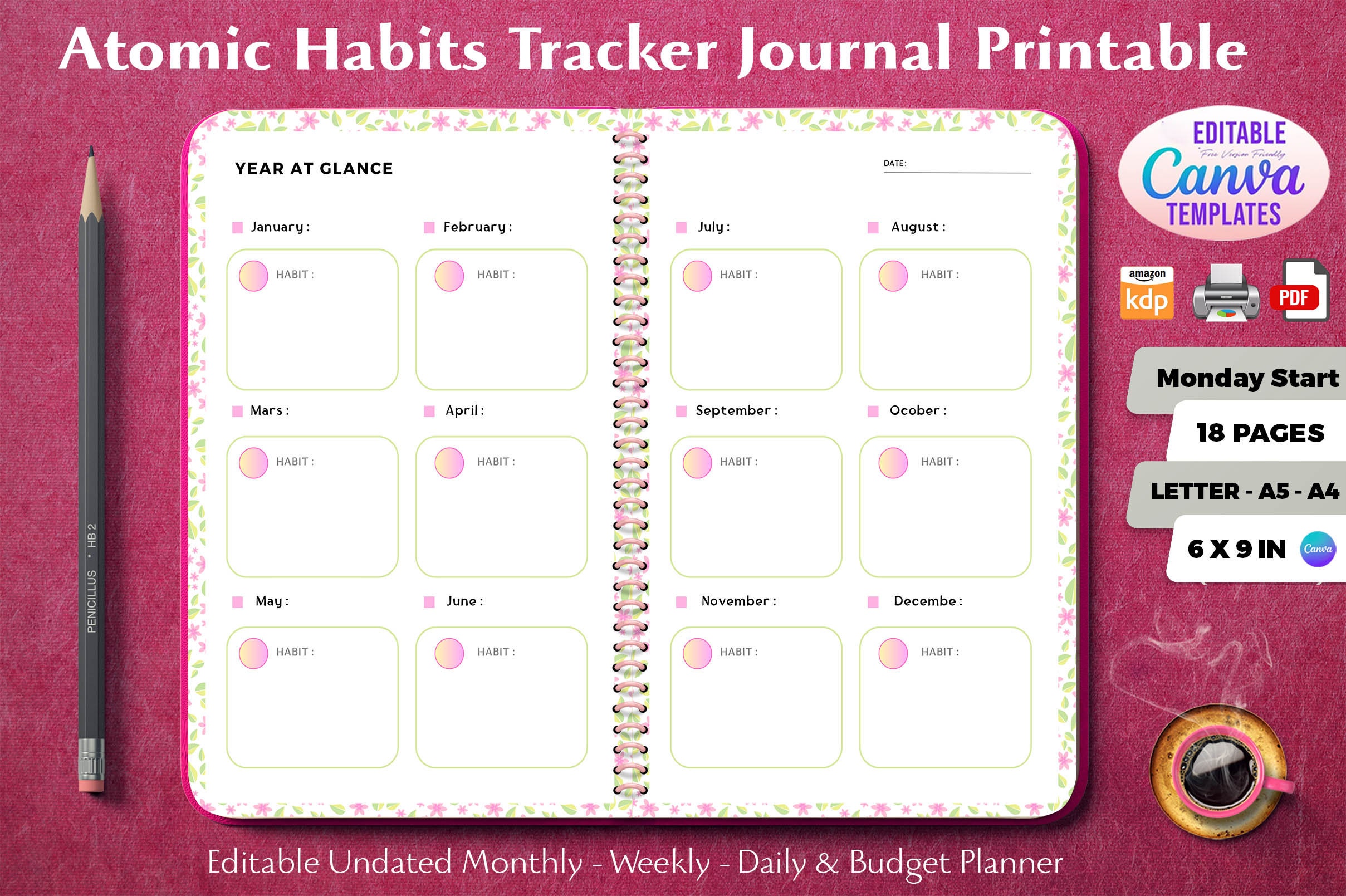 Atomic Habits Tracker Journal Printable / Editable Canva Templates