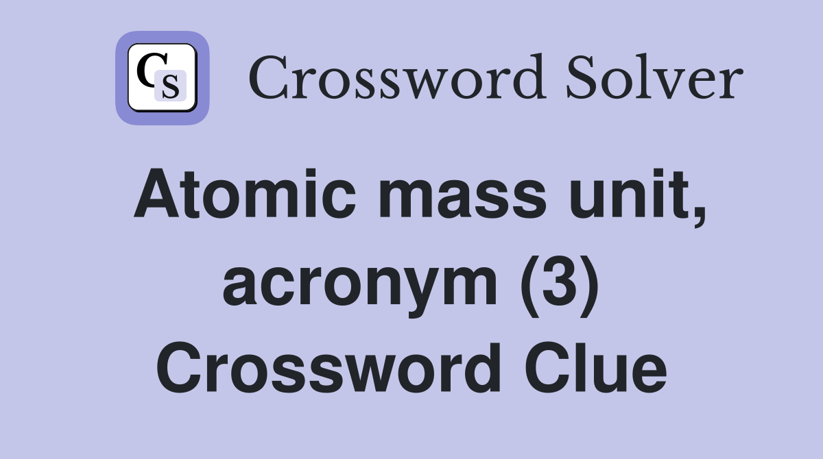 Atomic mass unit acronym (3) Crossword Clue Answers Crossword Solver