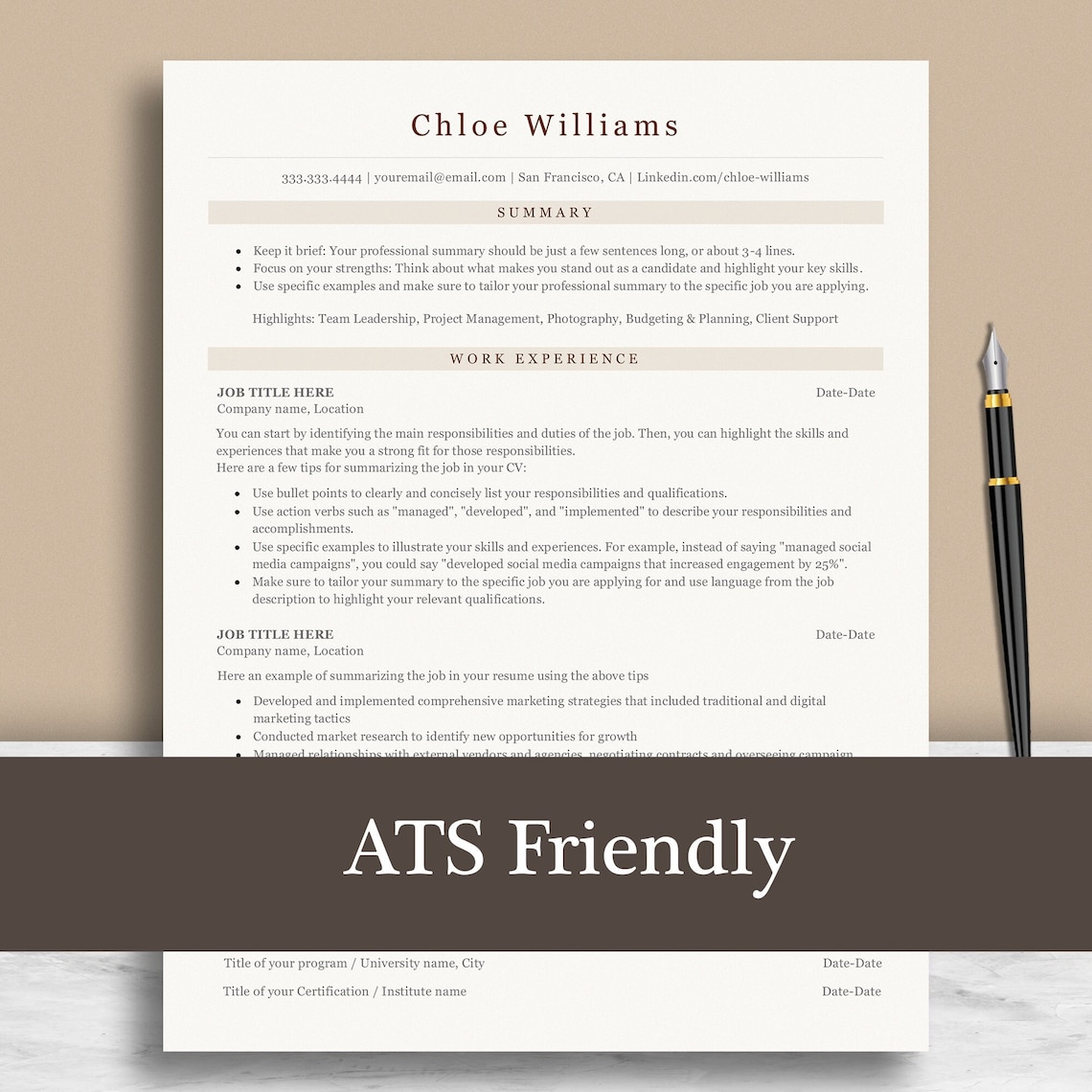 Ats Friendly Resume Template For Microsoft Word Cover Letter Etsy
