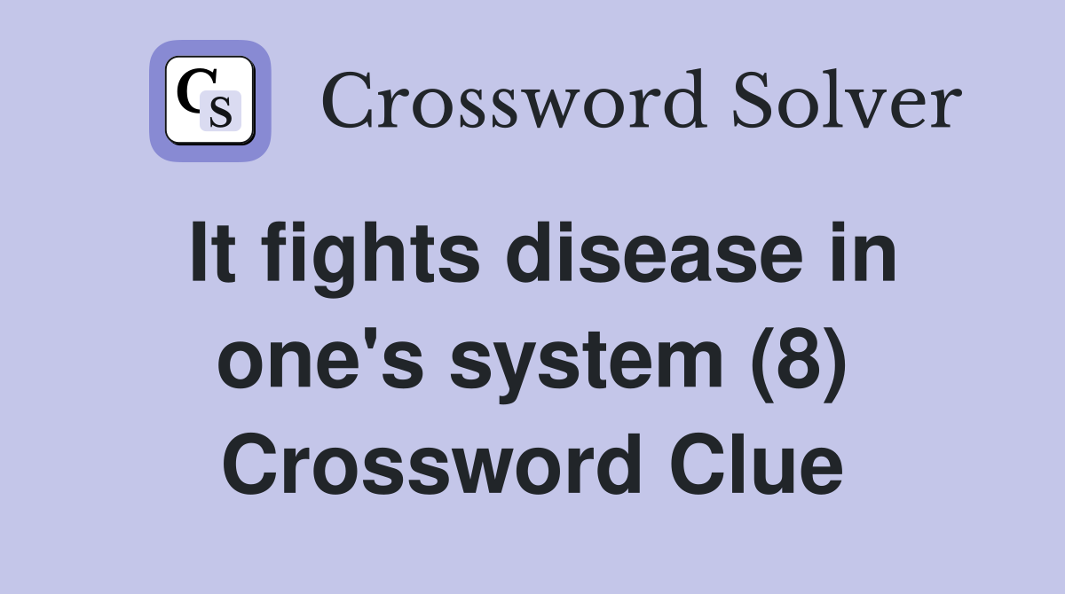 It fights disease in one #39 s system (8) Crossword Clue Answers