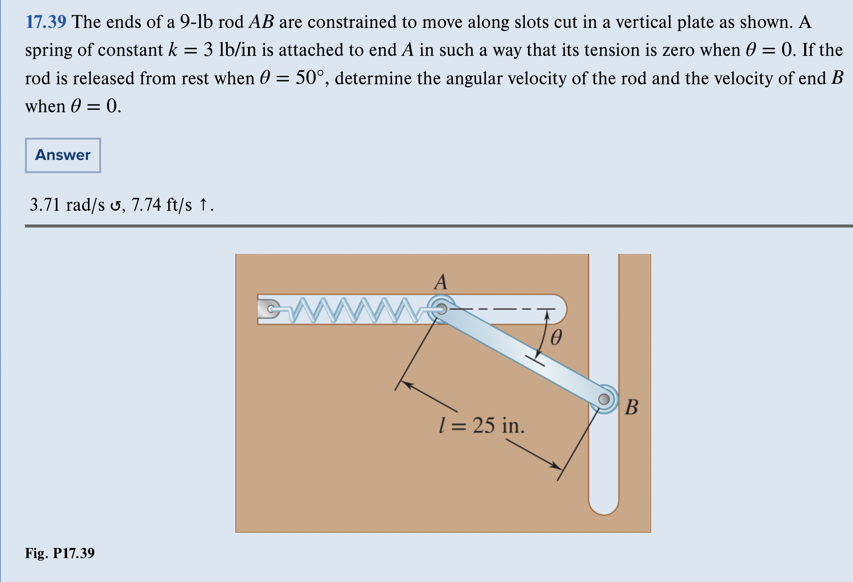 Solved 17 39 The ends of a 9 lb rod AB are constrained to Chegg com