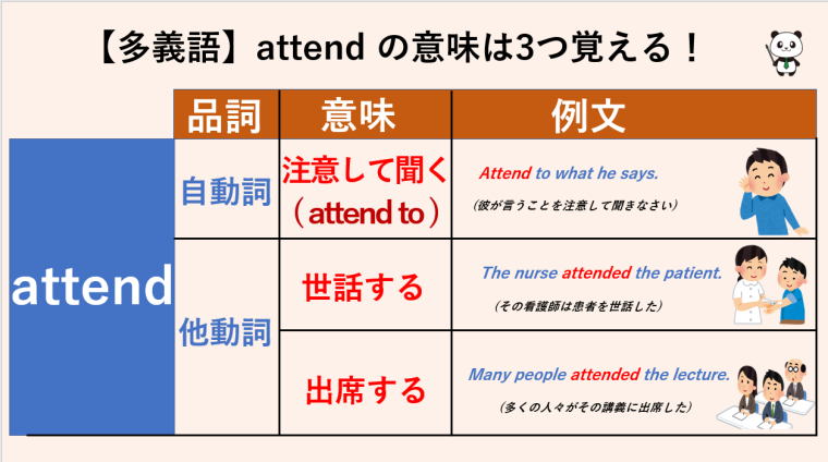 【TOEIC対策】多義語 attendは3つの意味を覚える! 丸暗記英語からの脱却ブログ