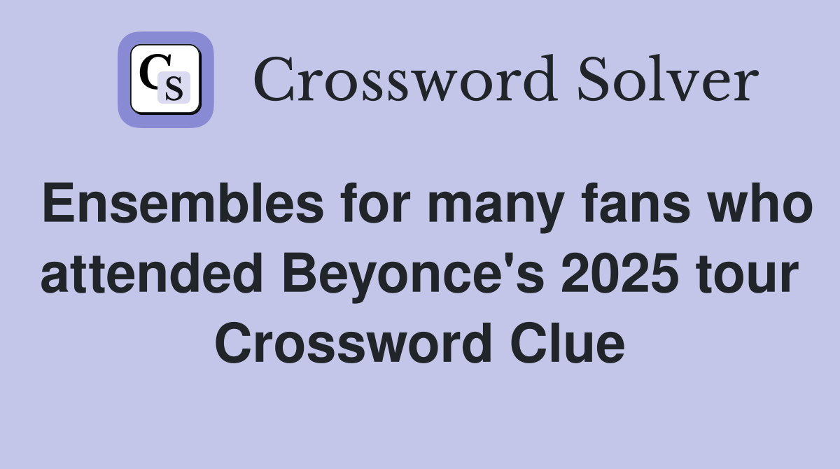 Ensembles for many fans who attended Beyonce s 2025 tour Crossword Clue