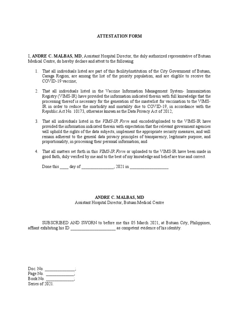 Attestation Form Template