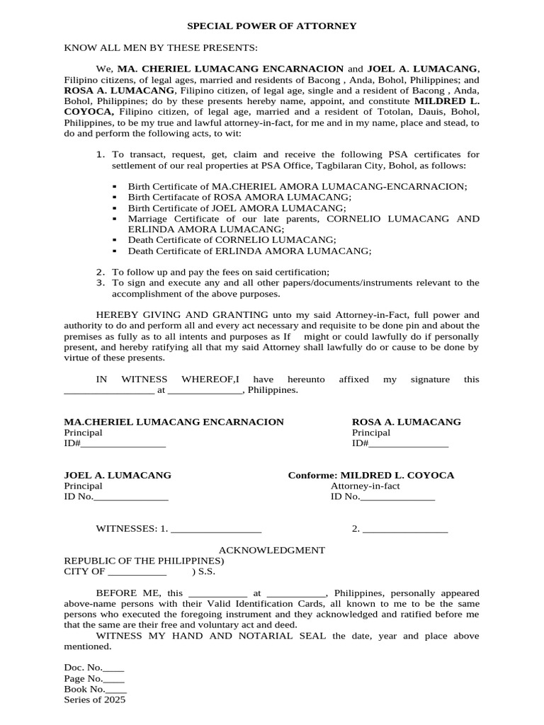 SPA Cheriel PDF Power Of Attorney Birth Certificate