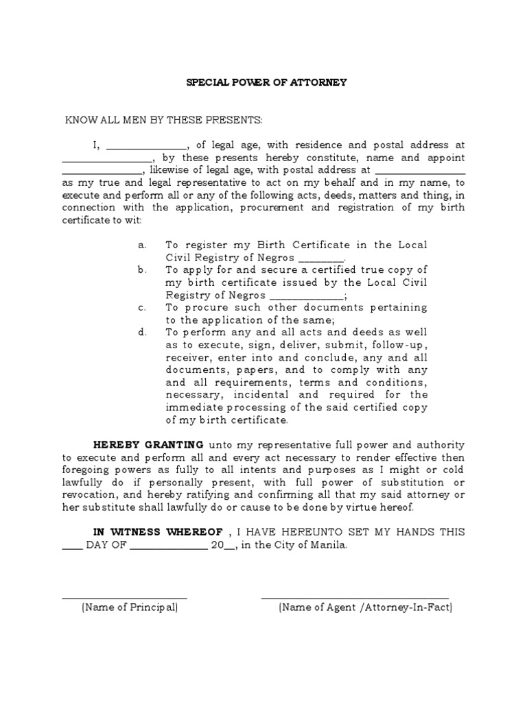 Special Power of Attorney Birth Cert PDF Power Of Attorney Civil