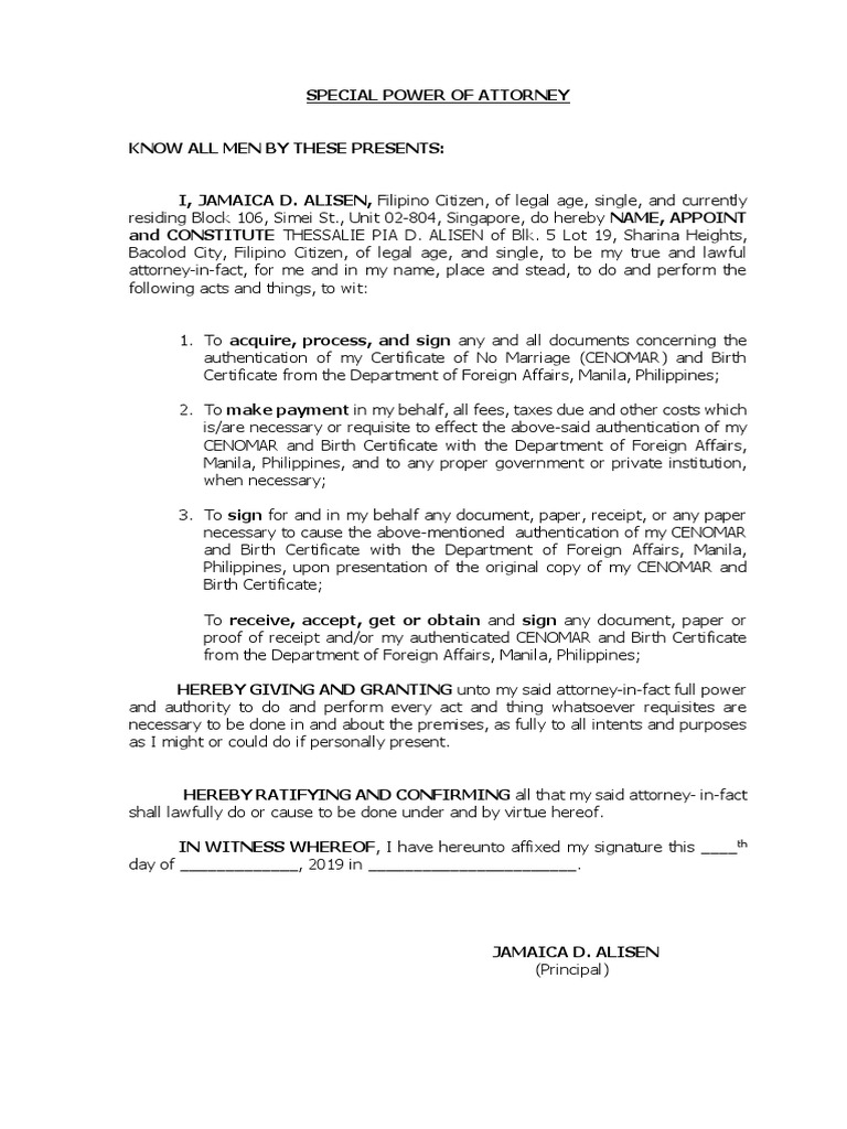 SPA Sample PDF Power Of Attorney Birth Certificate