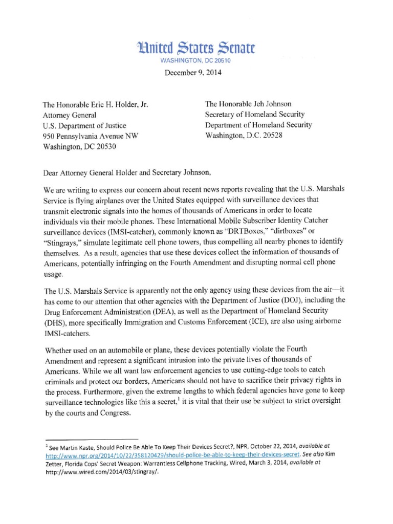 Tester #39 s Letter To Attorney General Holder and DHS Secretary Johnson PDF