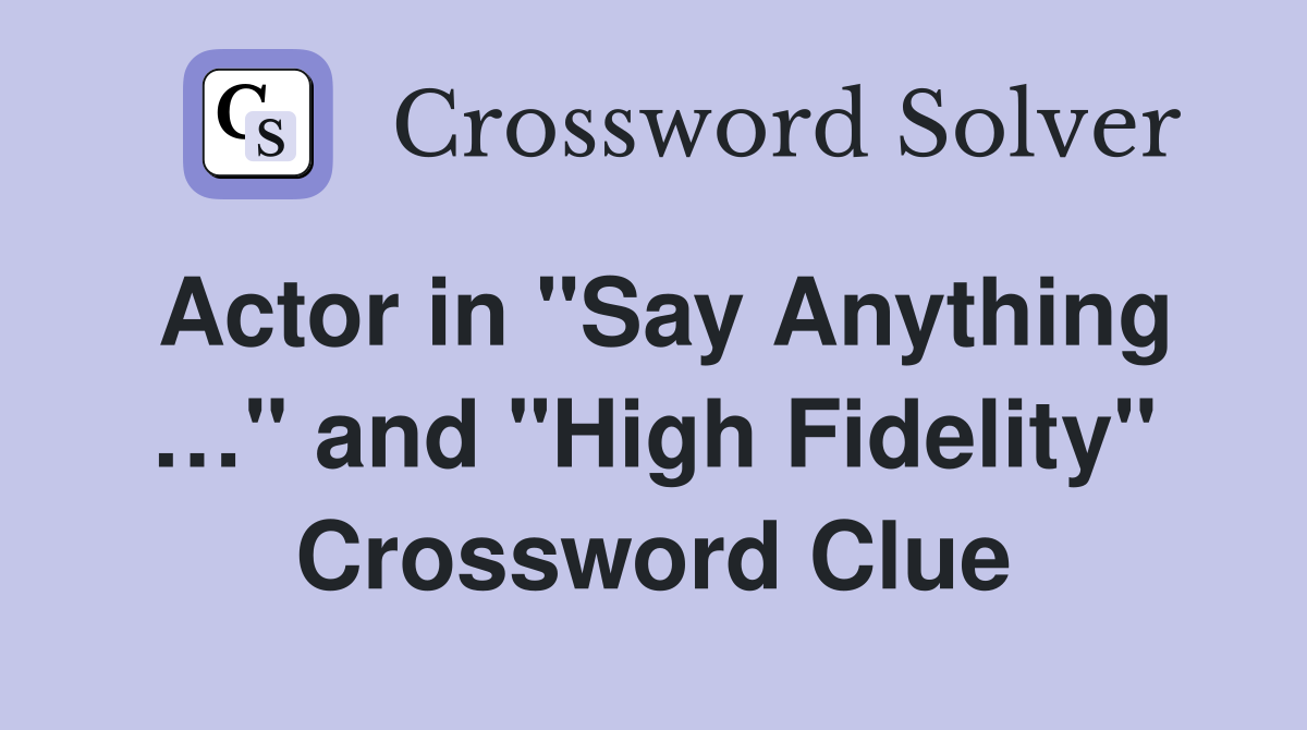 Actor in quot Say Anything quot and quot High Fidelity quot Crossword Clue Answers
