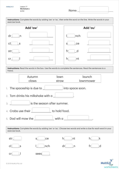 Lesson 77 au and aw Interactive worksheet TopWorksheets