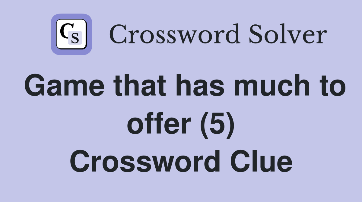 Game that has much to offer (5) Crossword Clue Answers Crossword Solver