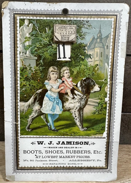 VINTAGE W J JAMISON Boots shoes Rubbers Etc Dog/Kid Calendar Ad