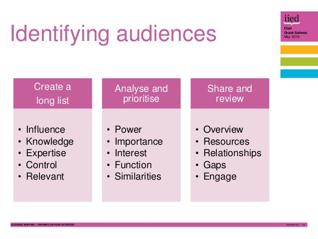 Audience mapping drawing on your own internal expertise Audience s