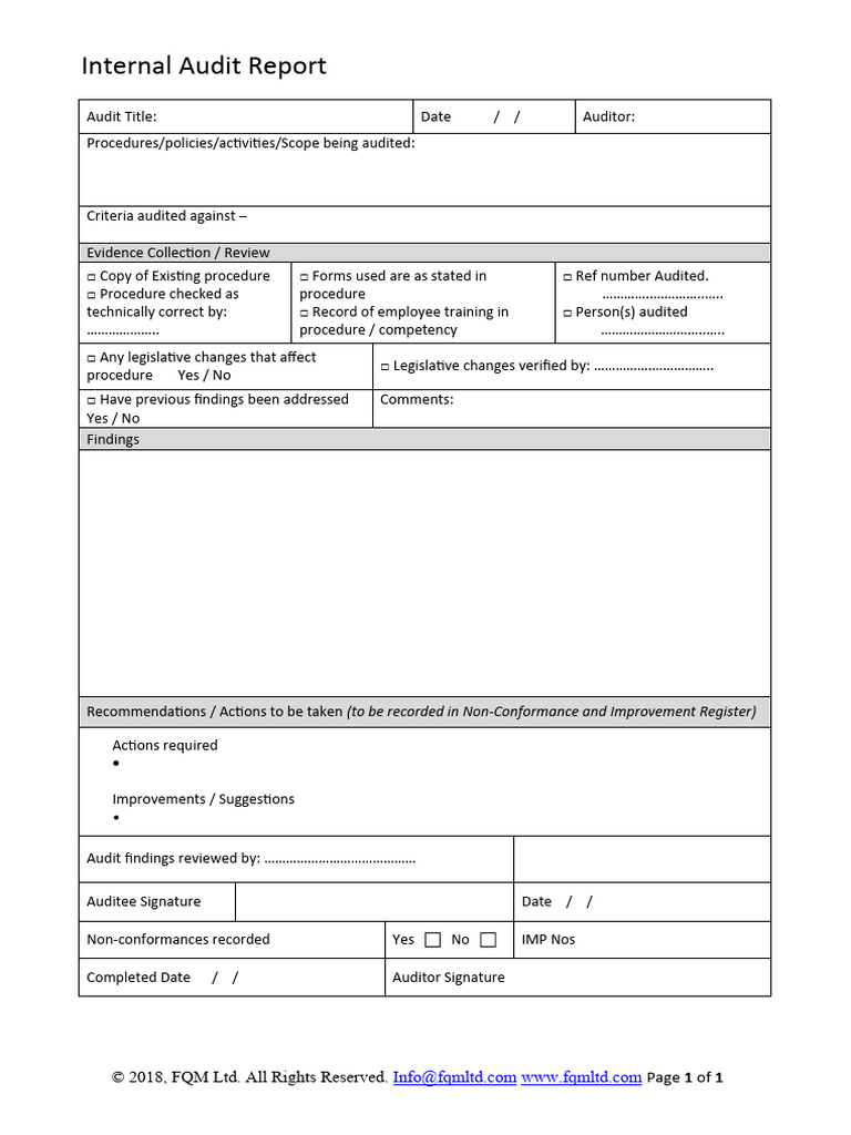Internal Audit Form Template