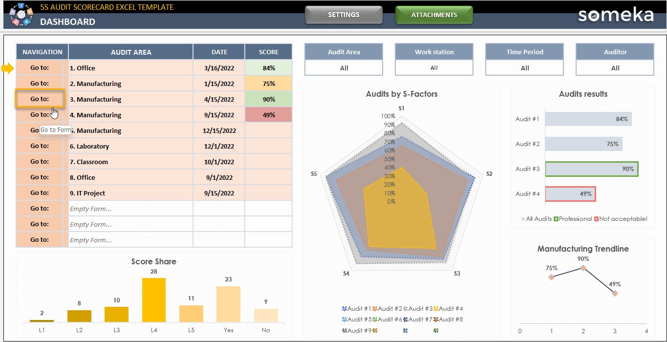 5S Audit Scorecard Excel Template Radar Chart Generator