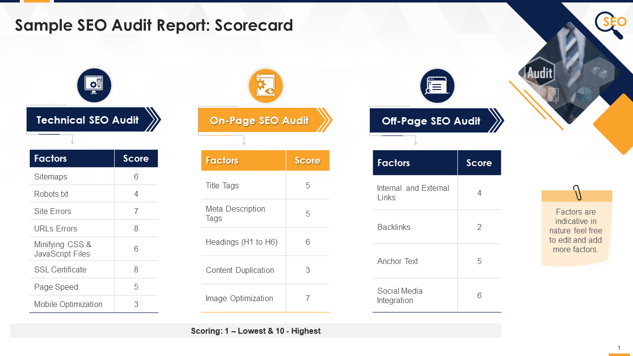 Sample Scorecard For SEO Audit Report Edu Ppt Presentation Graphics
