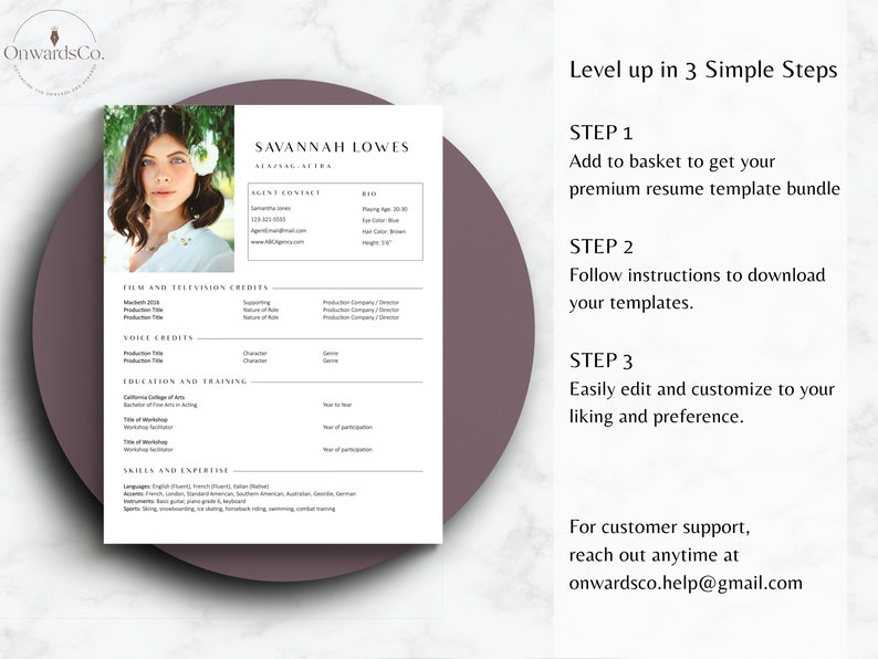 Professional Actors Resume Template for Audition Editable in Canva CV