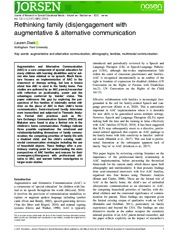 (PDF) Rethinking family (dis)engagement with augmentative alternative
