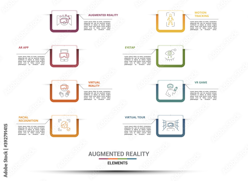 Infographic Augmented Reality template Icons in different colors