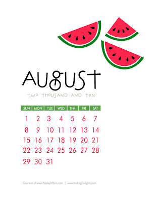 Inviting Delights: August 2010 Printable Calendar