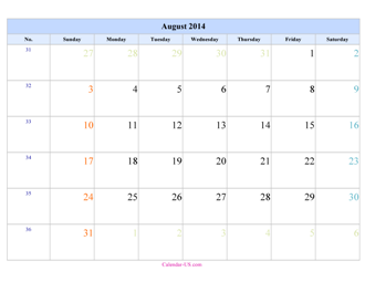 August 2014 Calendar