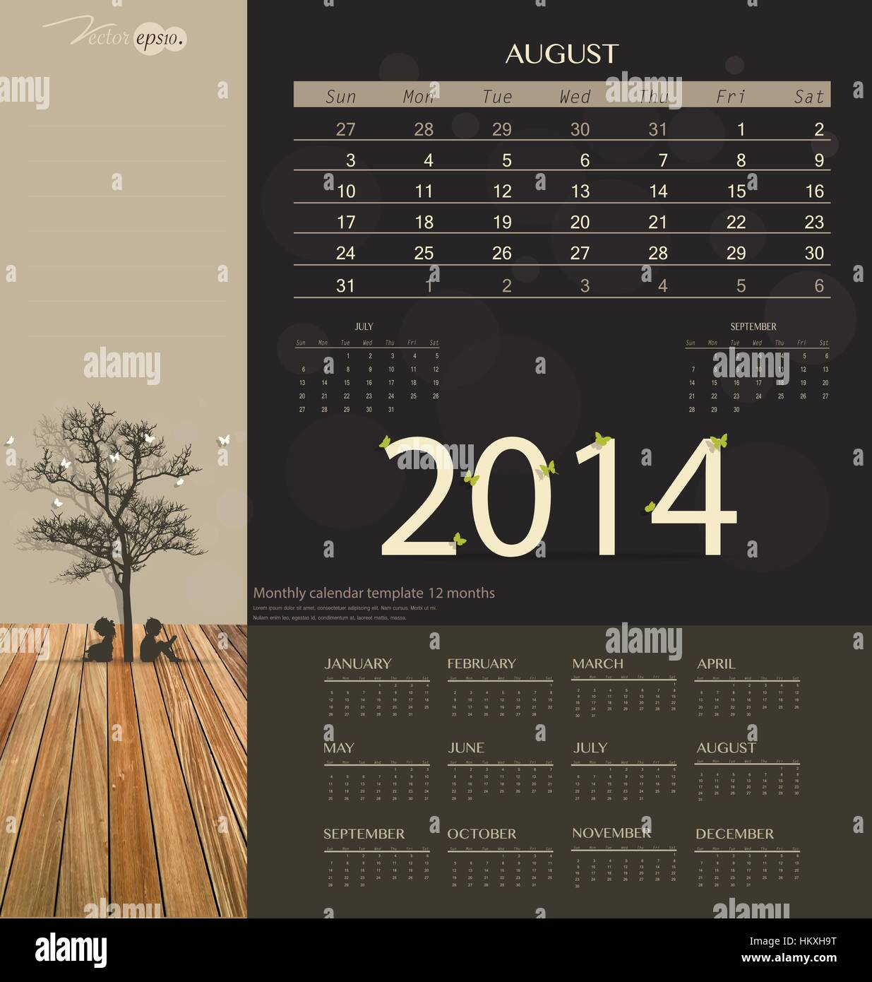 Design of a calendar month of august 2014 in English Stock Photo Alamy